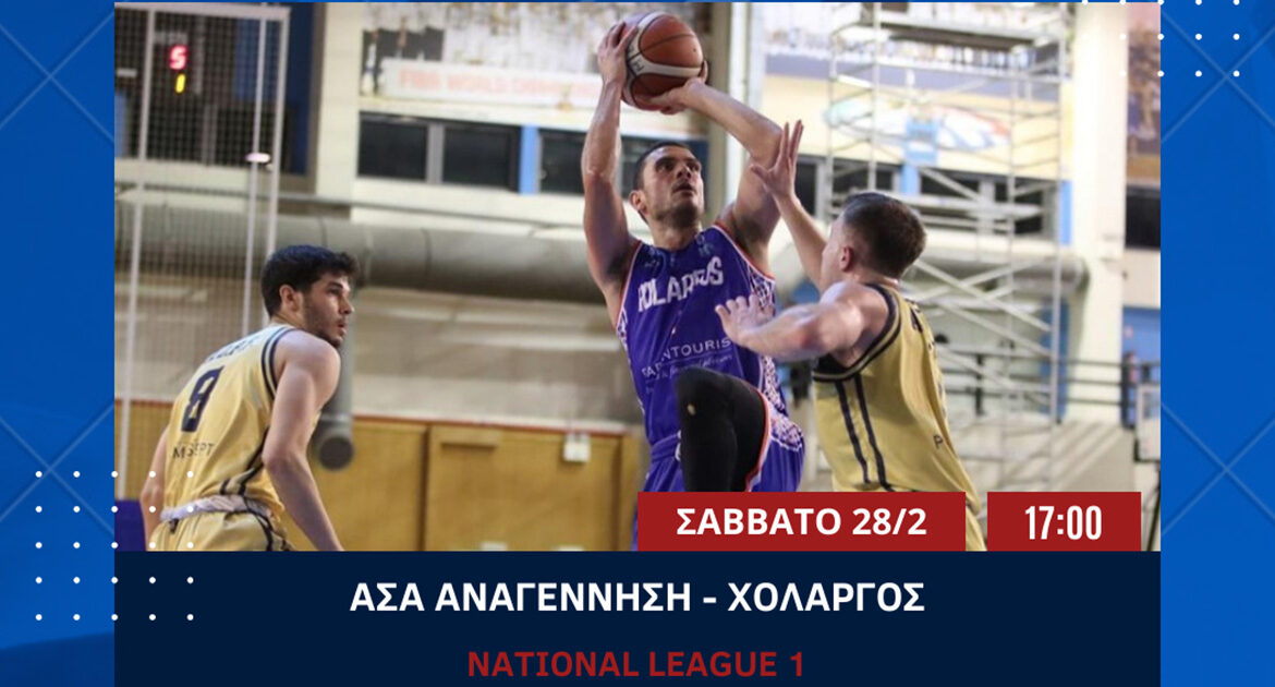 Ο Χολαργός αυτό το Σάββατο (28/2) αντιμετωπίζει, εκτός έδρας, τον ΑΣΑ Αναγέννηση, στο Κλειστό Γυμναστήριο Αρκαλοχωρίου, στις 17:00, στο πλαίσιο της 21ης αγωνιστικής της National League 1.