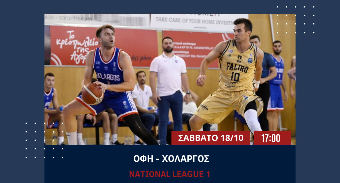 Ο Χολαργός για την 3η αγωνιστική της National League 1, αντιμετωπίζει εκτός έδρας τον ΟΦΗ στο κλειστό Γυμναστήριο ”Λίντο” αυτό το Σάββατο (18/10), στις 17:00.