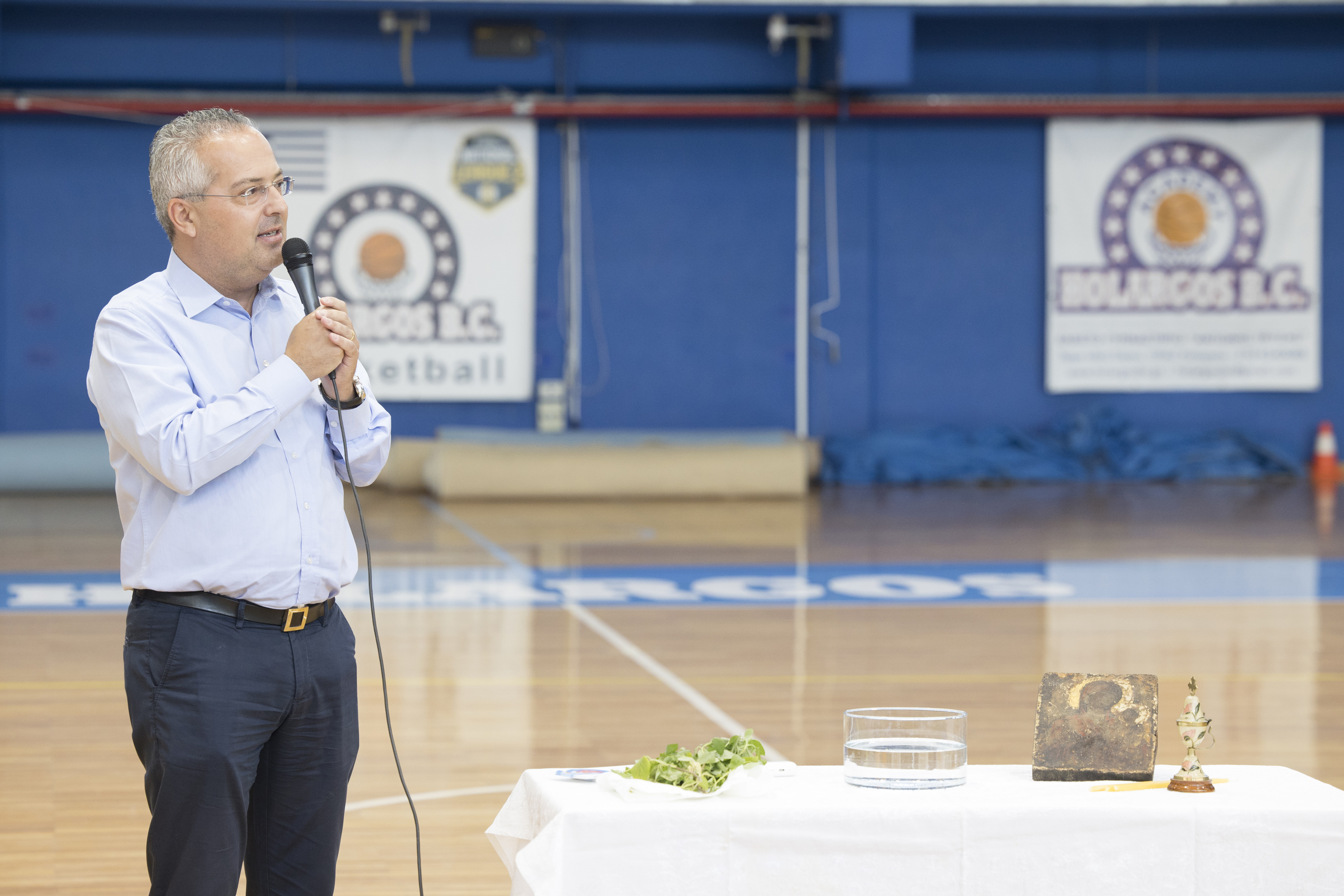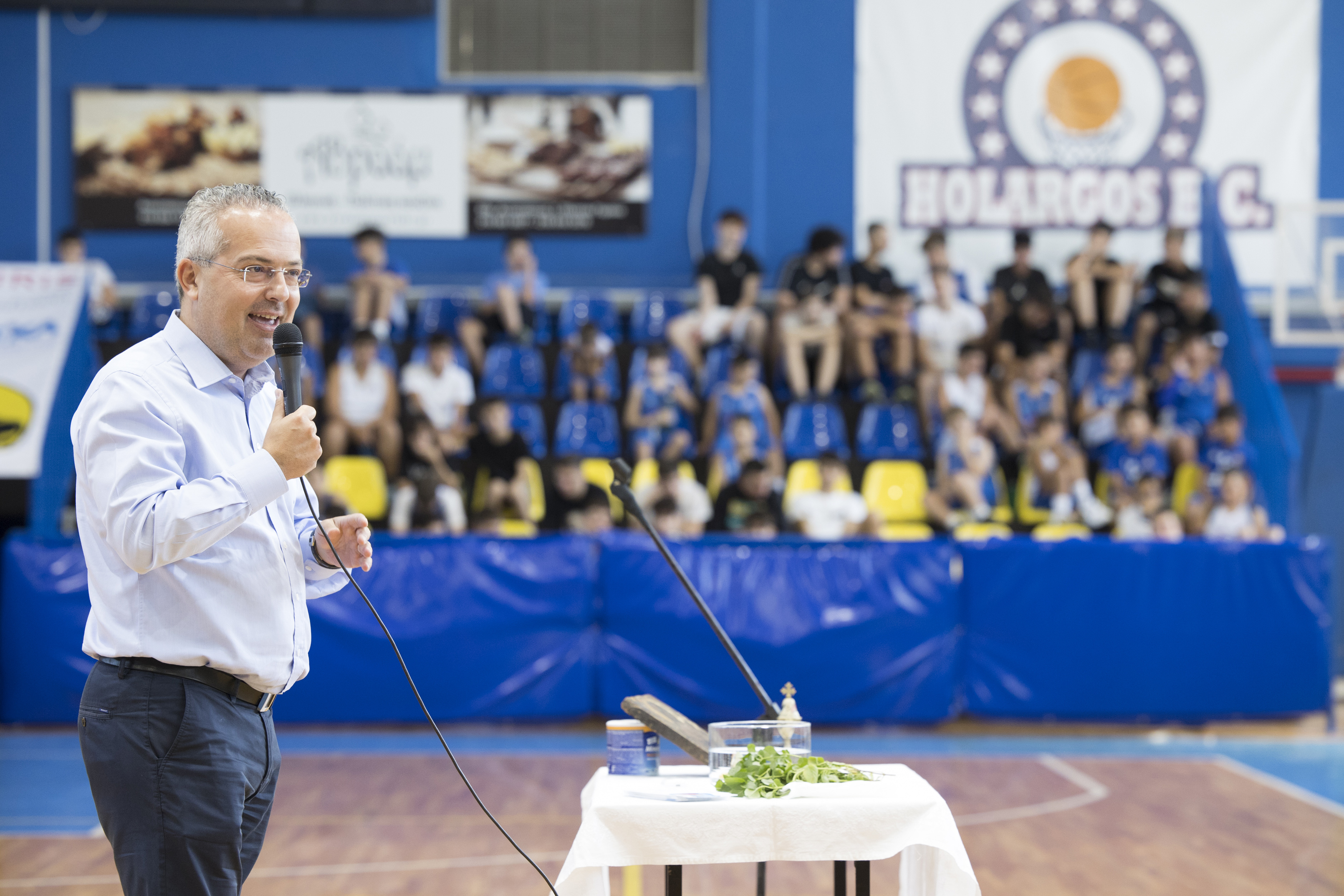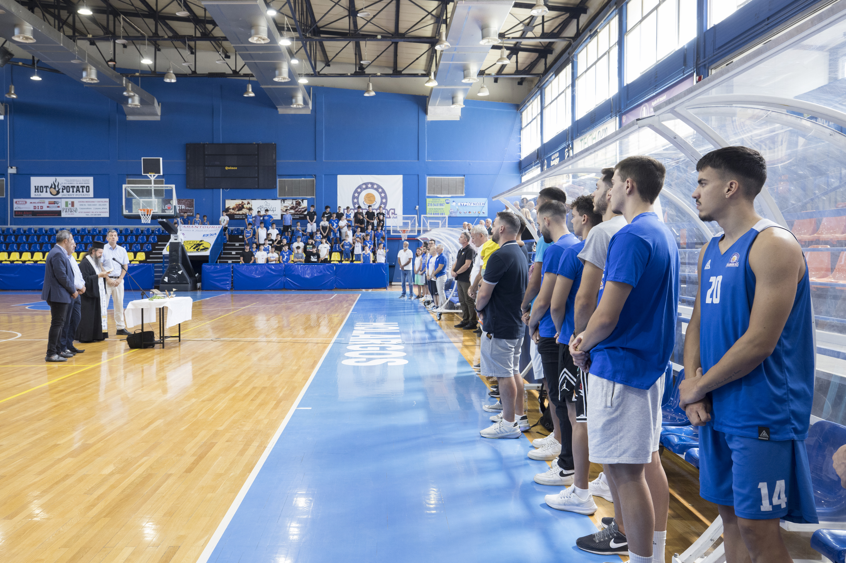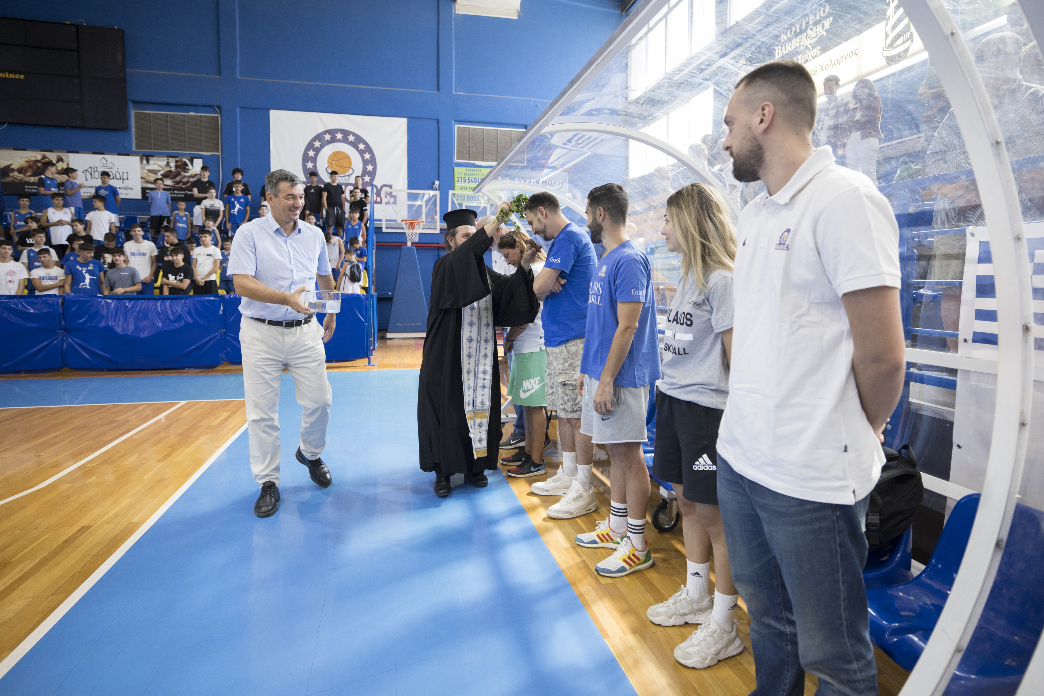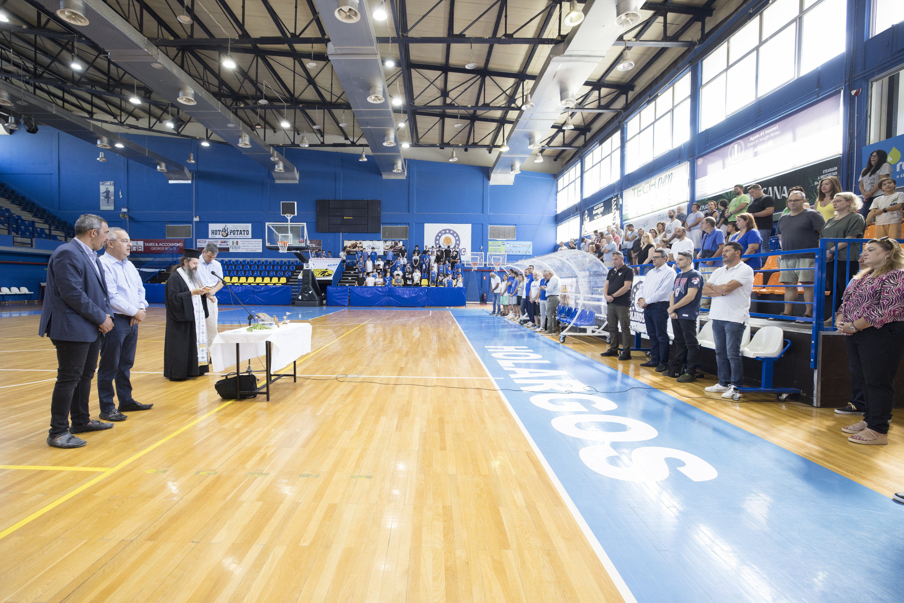 Το πρωί της Κυριακής (15/9), στο κλειστό γυμναστήριο «Αντώνης Τρίτσης», πραγματοποιήθηκε ο ετήσιος αγιασμός του Συλλόγου μας, παρουσία του Δημάρχου Παπάγου-Χολαργού κ. Ηλία Αποστολόπουλου, του Μέλους του Διοικητικού Συμβουλίου της Ελληνικής Εταιρείας Προστασίας Αυτιστικών Ατόμων Ε.Ε.Π.Α.Α κ. Κωνσταντίνο Αγγελόπουλο, του Ιδρυτή του «Τζάμπολ Αγάπης», κ. Ιωάννη Τσουμπρή, των μελών του Δ.Σ. του Συλλόγου, των αθλητών της ανδρικής ομάδας, των ακαδημιών και πλήθους γονέων.